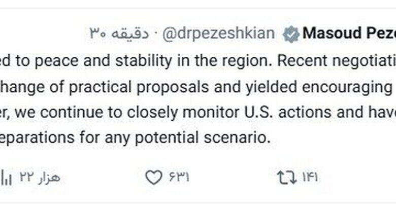 تهران- ایرنا- مسعود مزیکیان رئیس جمهوری ایران با بیان اینکه مذاکرات اخیر نشانه های امیدوارکننده ای به همراه داشت، گفت:…
