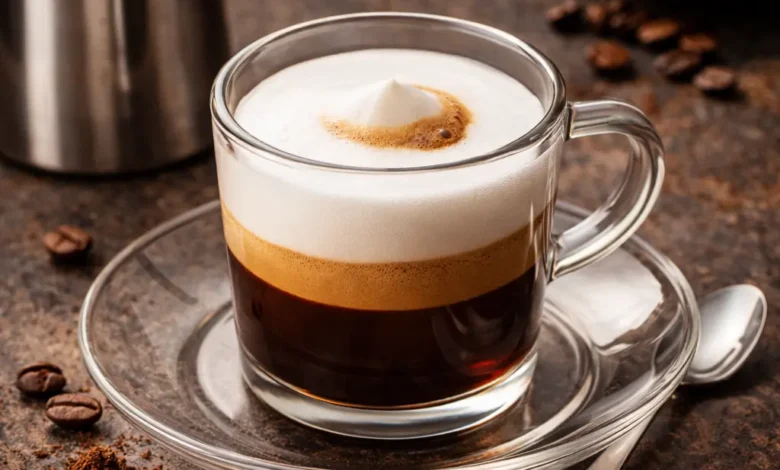 1. در نسخه کلاسیک، مقدار بسیار کمی اسپرسو یا قهوه قوی در فنجان ریخته می شود. به حدی که فقط کف فنجان را بپوشاند.