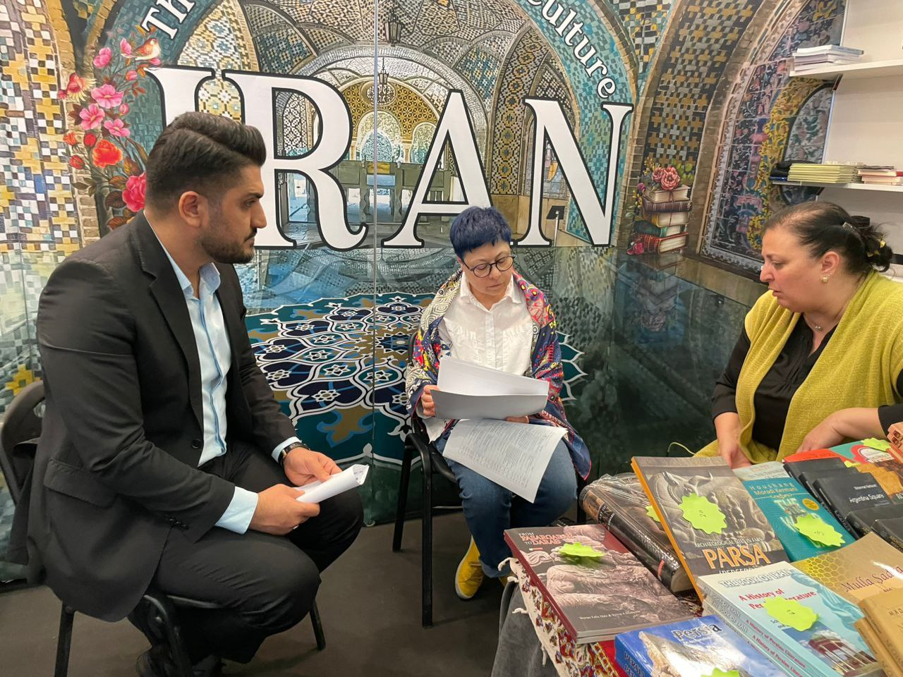 غرفه جمهوری اسلامی ایران ، با همکاری مشاوره فرهنگی ایران در تفلیس و مشارکت انستیتوی بین المللی البادی ، میزبان عناوین نویسندگان ایران به زبان فارسی و انگلیسی ، و عناوین کتابهای ادبیات کلاسیک و معاصر ترجمه و منتشر شده و منتشر شده در مشاوره با گوریه ایران در ژئوریه در ایران در فرهنگ فرهنگی. علاوه بر این کتاب ، مجموعه ای از محصولات صنایع دستی معتبر ایرانی نیز برای به دست آوردن بازدید کنندگان از هنر هنر ایرانی به نمایش گذاشته شد.