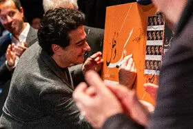 مجید درخشانی در ادامه به دلیل متاثر شدن از عدم حضور استاد شجریان در چنین مراسمی اشک ریخت.